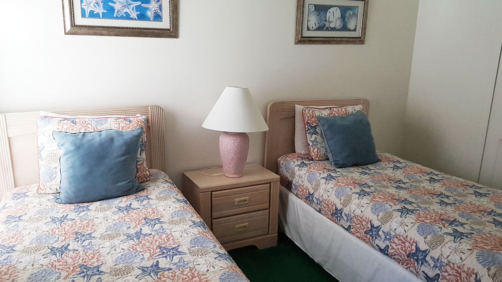 The other pair of bedrooms at the front of the property share a second bathroom (bath, shower and w.c.) with one having a queen bed and the other with two single beds.
